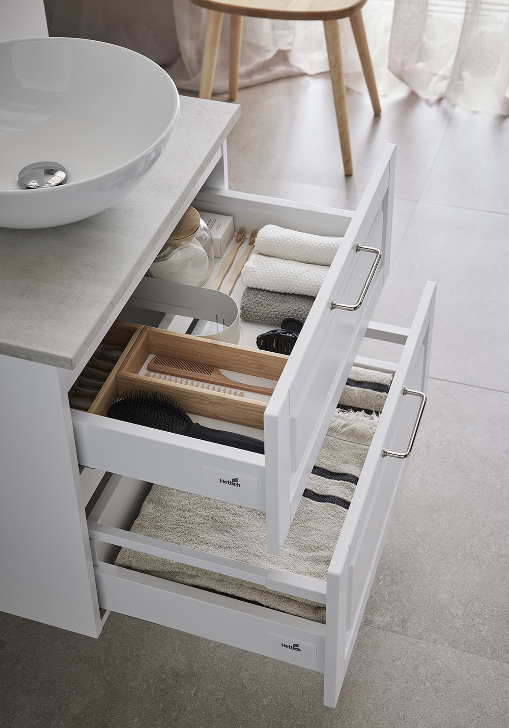 Hafa Grace bathroom furnitures have gracefully profiled fronts, perfectly matching a countryside bathroom as well as a modern, Scandinavia style bathroom. Soft close drawer with full extension provides a good overview within the drawers. Drawer mats and two bamboo frames to keep order in the drawers. The vanity cabin is pre-assembled and easy to install with adjustable suspension brackets and room prepared for wall as well as floor outlet. Grace under cabinets comes in several widths; from 600 up to 1200 and in two matt colours; white and anthracite. Side modules lends possibility to create even more variants, enabling you to create a personal combination for your very bathroom. Choose a handle or knob fitting your style and fit with a free standing basin on a counter top or a recessed basin of porcelain. Do not forget to buy basin mixer, waste pop up, water trap, drawer lightin and power socket for drawer.
