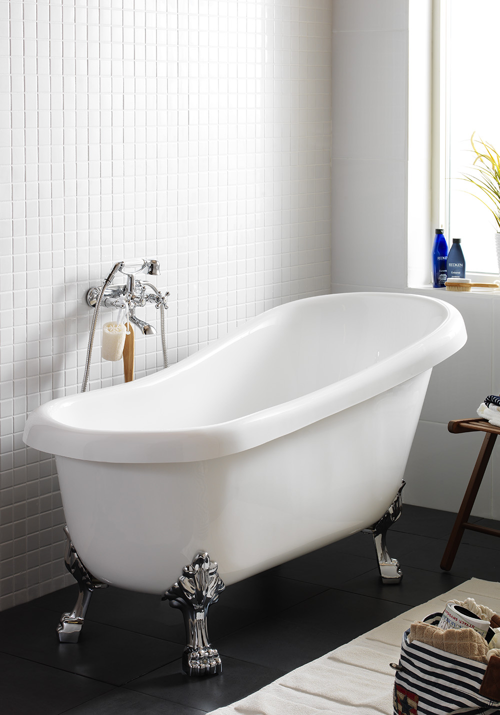 Hafa Mayfair is a classic freestanding bathtub in sanitary acrylic, reinforced with polyester composite. Easy to position and very comfortable thanks to its high back. Available in white and with elegant lion feet in chrome. Plughole and bath waste included.