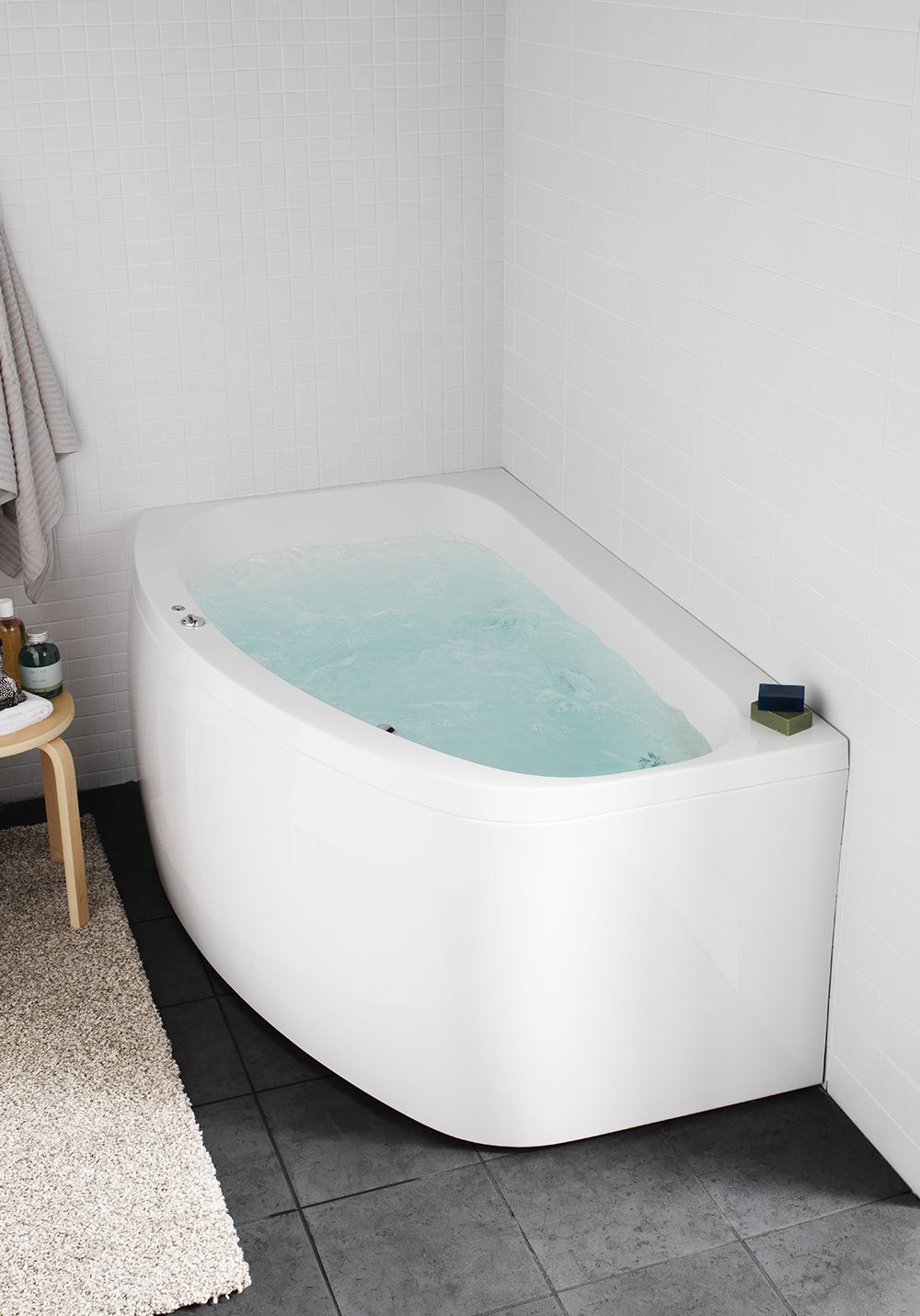 The bottom system consists of many small nozzles in the bottom of the tub that disperse lots of small hot bubbles in the tub. The compressor that powers the bottom system can be controlled via the touch panel. Thanks to the booster, you can also choose to amplify the power of the compressor