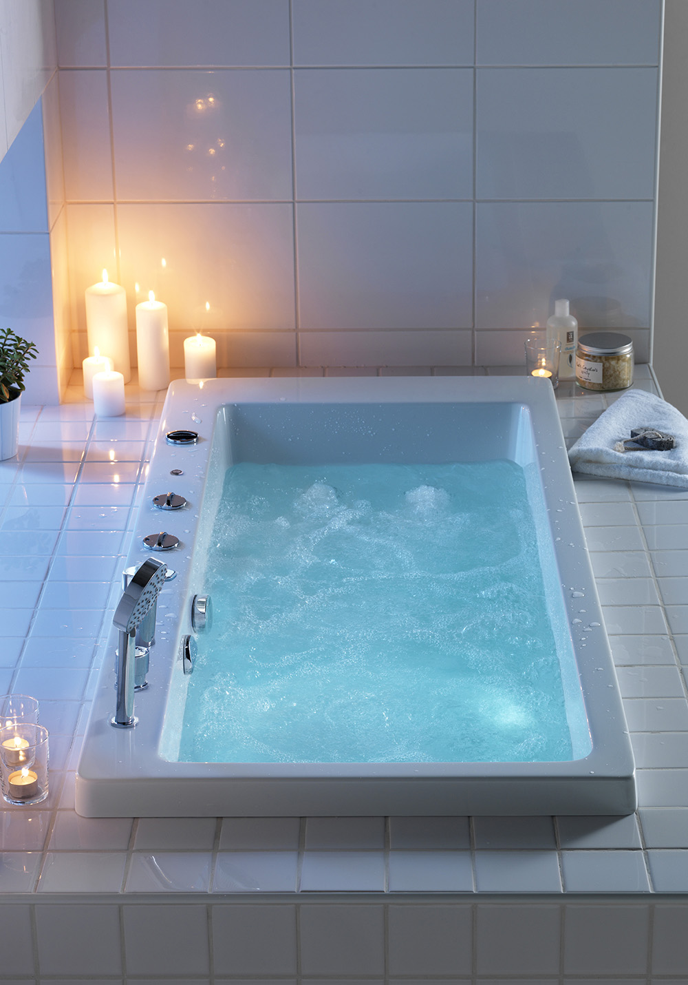 Clean the tub after each bath for long-lasting effect. Use a soft cloth to wipe away the water droplets and prevent limescale deposits. If an acrylic surface gets damaged or scratched, use Clean & Shine Bathroom as this cleans and eliminates minor marks and scratches. For deeper scratches/damage, buff with Restorer. Use our cleaning and disinfection products from SpaCare to keep bacteria away and the pipe system clean.