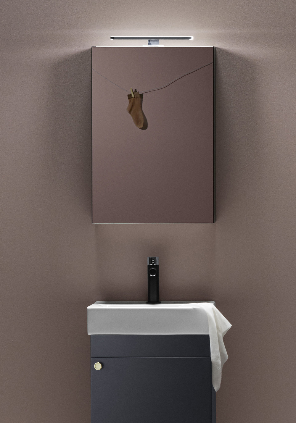 The Hafa Go mirror cabinet is a practical cabinet with plenty of storage space. With double-sided mirrored doors and glass shelves inside that can be adjusted in height. The mirror cabinet is easily mounted on a rail on the wall, making it easy for one person to install. With adjustable suspension fittings. Available in several widths and colours. Add Go LED lamp 1267270 and electrical outlet 1267265.