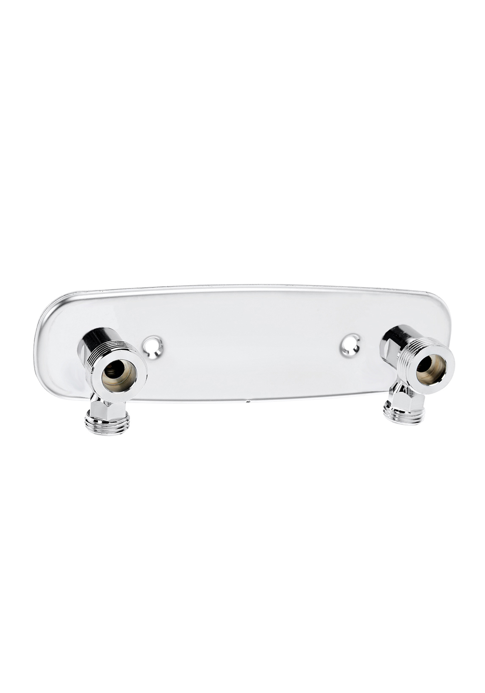 Stainless steel, polished mixing bracket with rotatable connection angles. For surface piping.