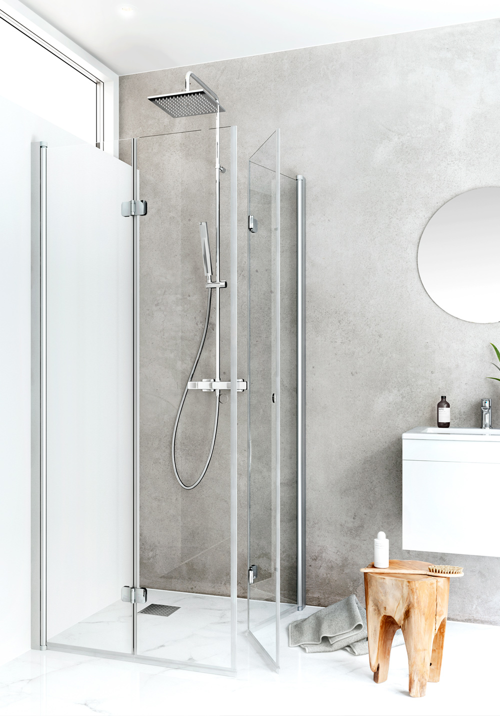- Showercorner with foldable doors with sturdy profiles