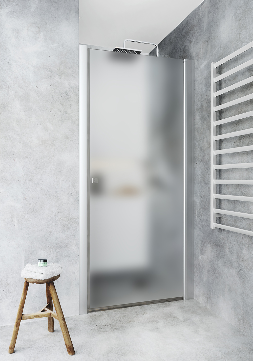 Quickly installed straight shower door in frosted glass that is adapted for niche opening and is mounted between fixed walls. The shower door is stable with a wall profile and a profile for the magnetic strip in anodised aluminum. The wall profiles can be mounted with screws or glue trays. The shower door has a patented solution for easy installation and adjustment, Hafa's InstaQuick ™. The shower door has a lifting hinge so that it does not touch the floor when opening and is reversible. 6 mm toughened safety glass. Height 2000 mm. Can be mounted with surface-mounted pipes, 35 mm. 22 mm trailer strip and handle included. The door can be supplemented with one or more extension profiles to be adapted to the dimensions of the niche.
