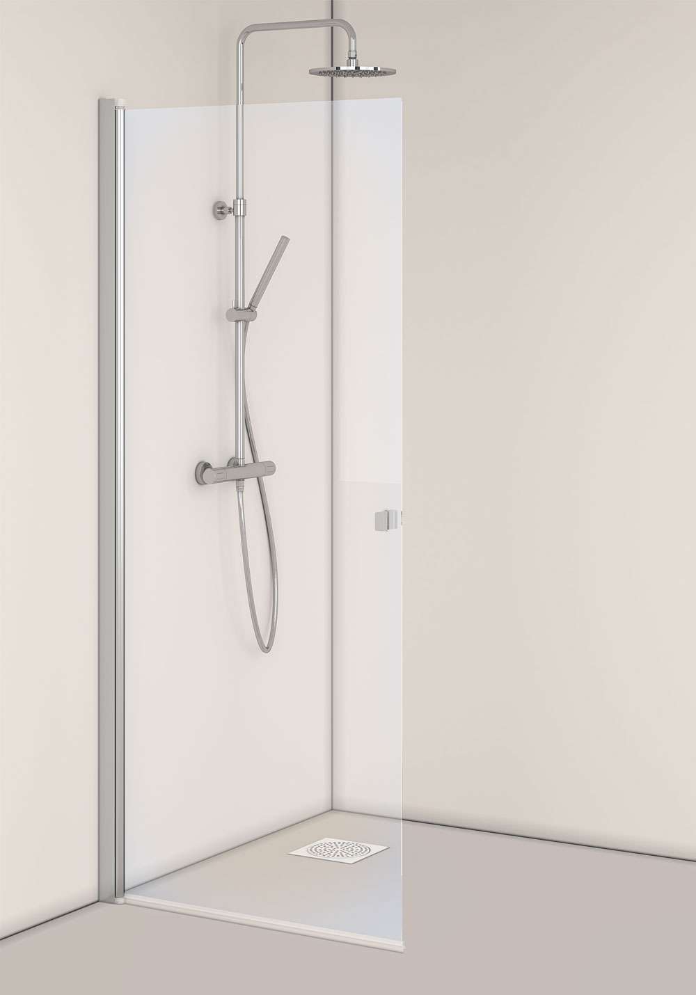 Quickly installed straight shower door in clear glass with prodiles in black matt or aluminum. Practical reversible shower door that is easily turned inwards when not in use and fits the smaller bathroom. The shower door is stable with a wall profile in black lacquered aluminum that can be mounted with a screw or glue trays. Easily installed and adjusted by one person, InstaQuick™. The shower door has a lifting hinge so that it does not touch the floor when opening and is reversible. The shower door can be combined with other doors and screens in the IglooPro series. 6 mm toughened safety glass. Height 2000 mm. Can be mounted with surface-mounted pipes, cc 35 mm. 22 mm door seal and handle included.